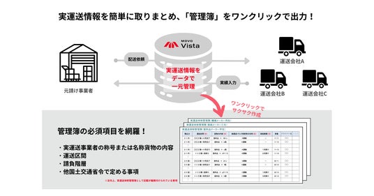 また安田運輸では、2025年4月施行の改正貨物自動車運送事業法に対応するため、MOVO Vistaの「実運送体制管理簿出力機能」の活用を予定しています。「実運送体制管理簿」は、元請事業者が配送に関する事業者名や請負階層、貨物内容などを記録するもので、適正な取引環境を整備することを目的に、元請事業者に義務化されます。