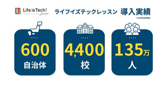 プログラミング教育サービス事業を手がけるライフイズテック株式会社(本社:東京都港区、代表取締役CEO:水野 雄介)は、中学・高校向けプログラミング学習用EdTech教材「Life is Tech ! Lesson(ライフイズテック レッスン)」の導入自治体数が600を超えたことをご報告いたします。2024年8月時点で、600自治体、4,400校の公立・私立学校に導入され、約135万人の中学・高校生に利用いただいています。また20都道府県、および207市区町村では、自治体主導で、域内の公立中学・高校に導入いただいています。