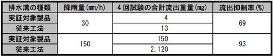 ▸表:実証項目の結果(プラスチック片の流出量の比較)