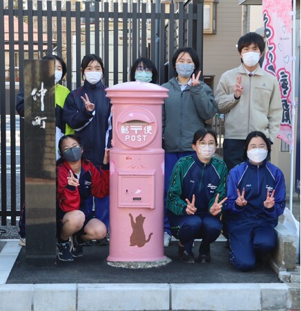 今回は第3基目で、正面に猫と花弁が描かれている桜色ポストが誕生しました。