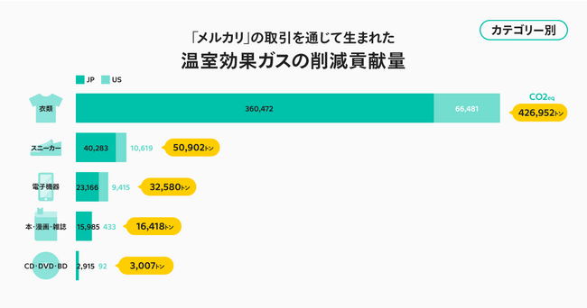 カテゴリー別「メルカリ」の取引を通じて生まれた削減貢献量
