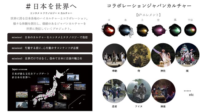 世界に未だ無い新しい表現を日々追求しチャレンジを続け、“「#日本を世界へ」プロジェクト” を展開しています。