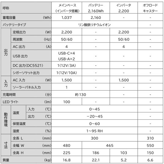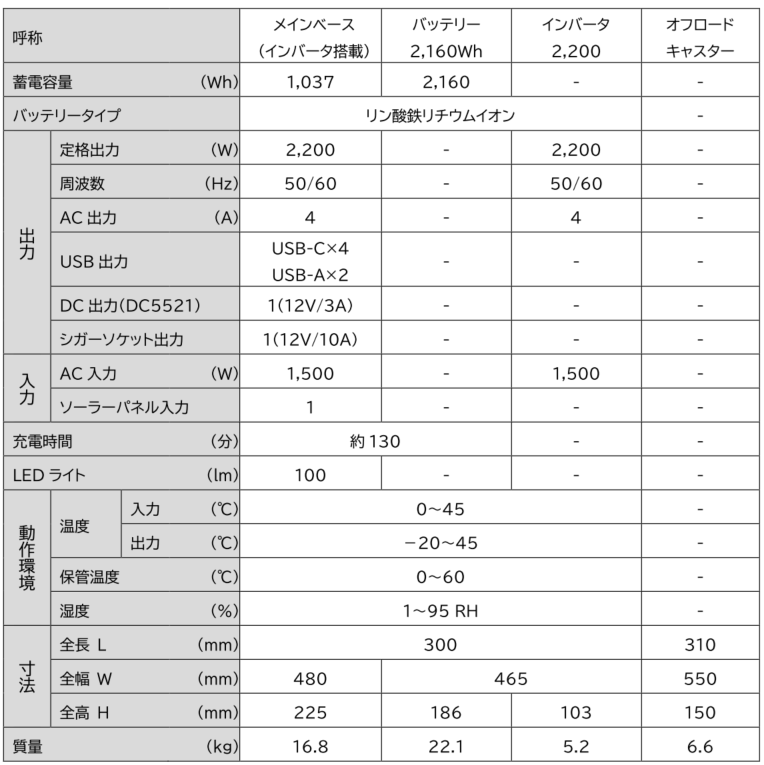 ※上記の仕様は、実使用時は、天候や使用する機器の電力傾向によって異なる場合があります。