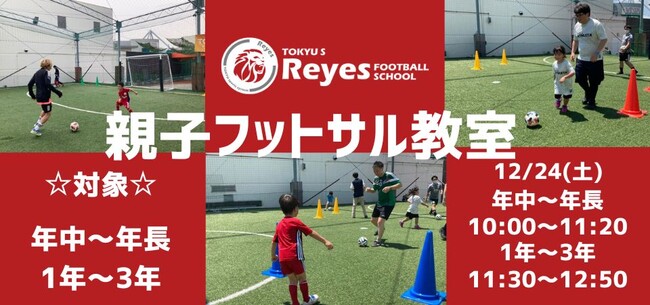 東急Sレイエス フットボールスクール 聖蹟桜ヶ丘にて、12月24日(土)のクリスマスイヴに親子で楽しめるフットサル教室を開催いたします。クリスマスイヴにフットボールを通して親子の絆をより強くしませんか。皆様のご参加を心よりお待ちしております。