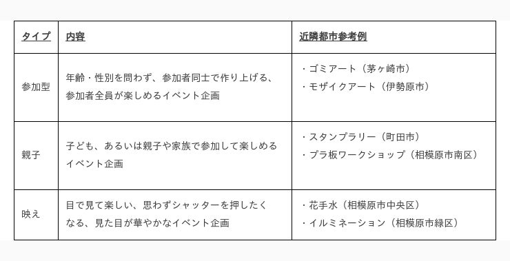令和5年度は「参加型」「親子」「映え」のいずれかに当てはまるイベント企画のアイディアを募集します!