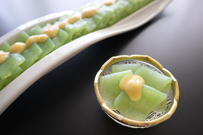 当ホテルはこれにちなみ、和歌山県 高野山の精進料理店「中央食堂 さんぼう」に監修をお願いし、5階レストラン「ダイニング ミユウ」の朝食に「精進料理コーナー」を設けて、3~4品ご提供いたします。精進料理の特徴である大豆・昆布・椎茸の植物性の食材のみから取った出汁を使い、野菜の「五目煮」や「焚き合わせ」などを当ホテルの和食職人が作り上げます。また、山椒、七味、辛子、ねぎ、にんにくなど刺激のある食材を一切使わないことも精進料理の特徴です。その他にも、「胡麻豆腐(ごまとうふ)」や「さしみ蒟蒻」、「金山寺味噌」や「茶粥」もご提供いたします。