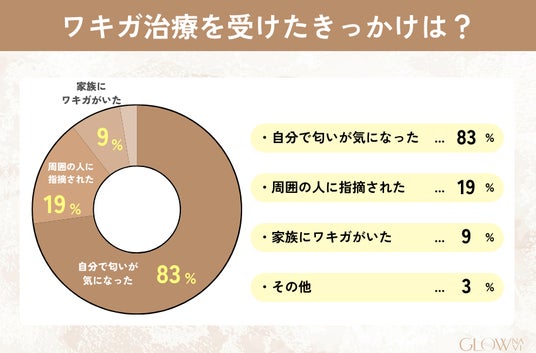 - ワキガ治療を受けた人の8割が「自分で匂いが気になった」ため。施術を受けたと回答