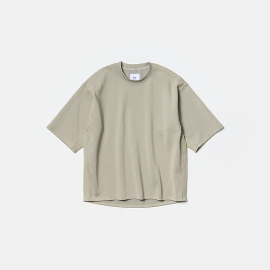 ややゆとりがあるシルエットのショートスリーブTシャツ。裾にはドローコードが施されており、シルエットに変化をつけることが可能です。また、身頃脇と袖下部分にたたきつけた同系色のロゴテープがアクセントになっています。