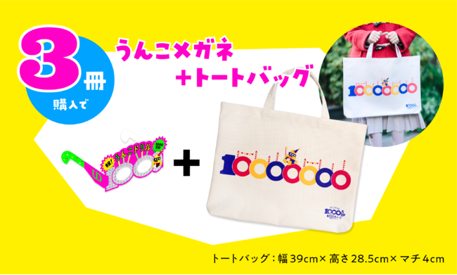ドリル3冊購入:うんこメガネ+トートバッグ