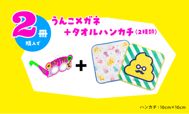 ドリル2冊購入:うんこメガネ+タオルハンカチ(2種類)