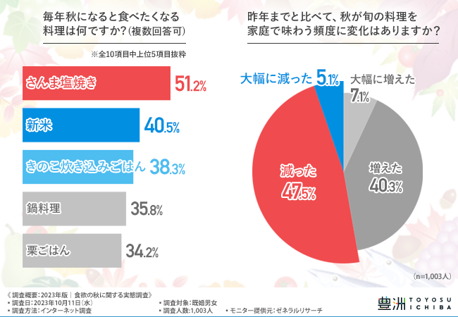 【秋に食べたくなる料理】1位は『さんま塩焼き』!秋の料理を家庭で楽しむ頻度に変化はある?