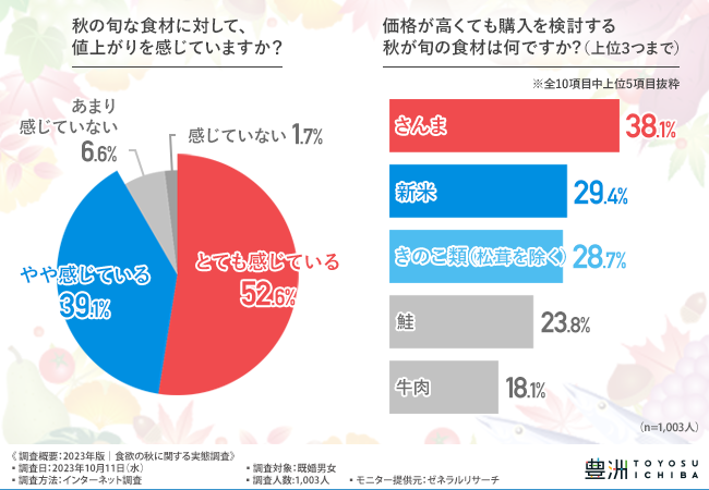 今回の調査結果で、非常に多くの方が秋が旬の食材について値上がりを感じていることが明らかになりました。
