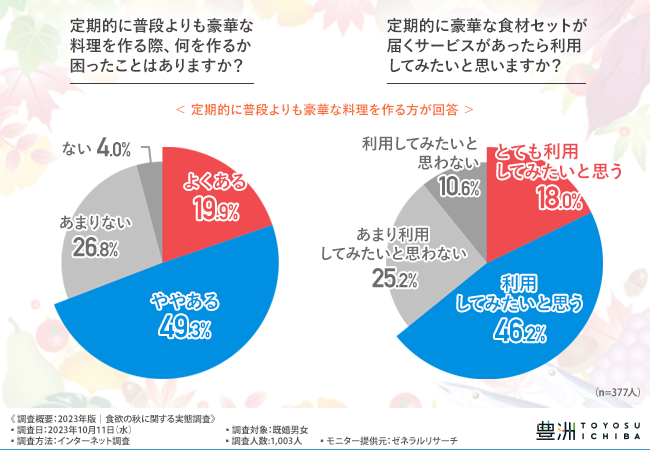 そこで今回、豊洲市場ドットコム(https://www.tsukijiichiba.com/user/collection/126)を運営する株式会社食文化は、既婚男女を対象に、「2023年版|食欲の秋に関する実態調査」を実施しました。