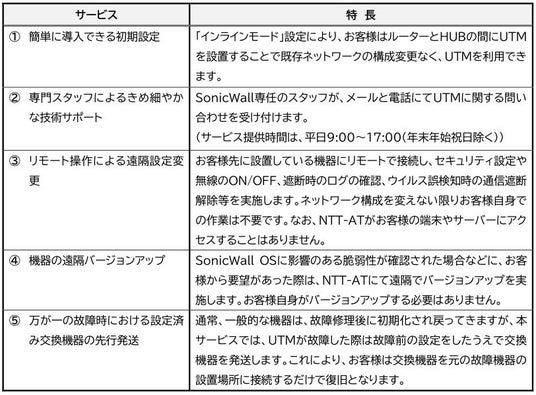 このような背景の下、NTT-ATは小規模企業向けにSonicWall UTMを初期設定および運用付きで提供することとしました。
