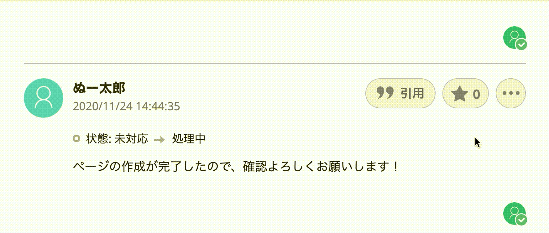 キャラクターとコメントは数種類用意されていますが、スターをつけた人にしか見えず、スターを受け取ったメンバーには表示されません。また、ユーザー側で、勤労感謝の日バージョンのスター機能のオン・オフ設定は行えません。