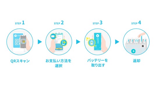 モバイルバッテリーシェアリング「ChargeSPOT」。レンタル方法は「ChargeSPOT」対応アプリでバッテリースタンドのQRをスキャンするだけの簡単操作。日本全国47都道府県に設置されており、グローバルでも香港、タイ、台湾、中国、シンガポール、ベトナム、マカオとエリアを拡大中です。
