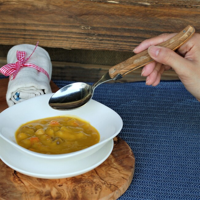 温かみがあり個性的な木目が楽しめるオリーブハンドルのディナースプーンを5本セットにしました、 スープパスタやシチュー、ボルシチなどに最適 ハンドルの艶は使うほどに深まります、長く愛せるカトラリー