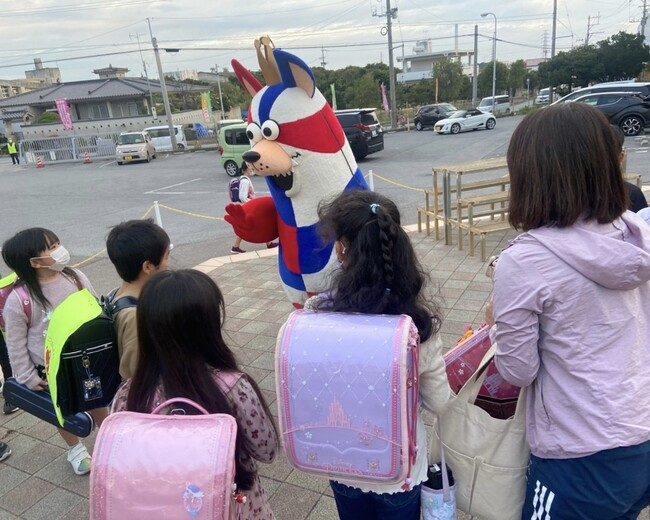 「おおきなわ」の活動の一環として10月末から行なっている「ゴーディーによる朝のあいさつ運動」にて、12月は沖縄市内の小学校(2校)と北谷町の小学校(1校)へ訪問しました。また、年が明けて2023年には、うるま市の小学校(1校)へもあいさつ運動を実施させていただきました。2023年も1日でも多く、たくさんの子どもたちに朝から笑顔を与えられるよう継続して活動してまいります。