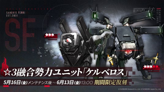 強力な融合勢力ユニットを捕獲できる「捕獲作戦」にて、「5月16日(金)メンテナンス後」より過去の捕獲区域『SP-7C区域』と『S10地区鉄血奥地』が復刻し、それぞれで★3ユニット「アルケミスト」と「ケルベロス」の捕獲が可能になります。