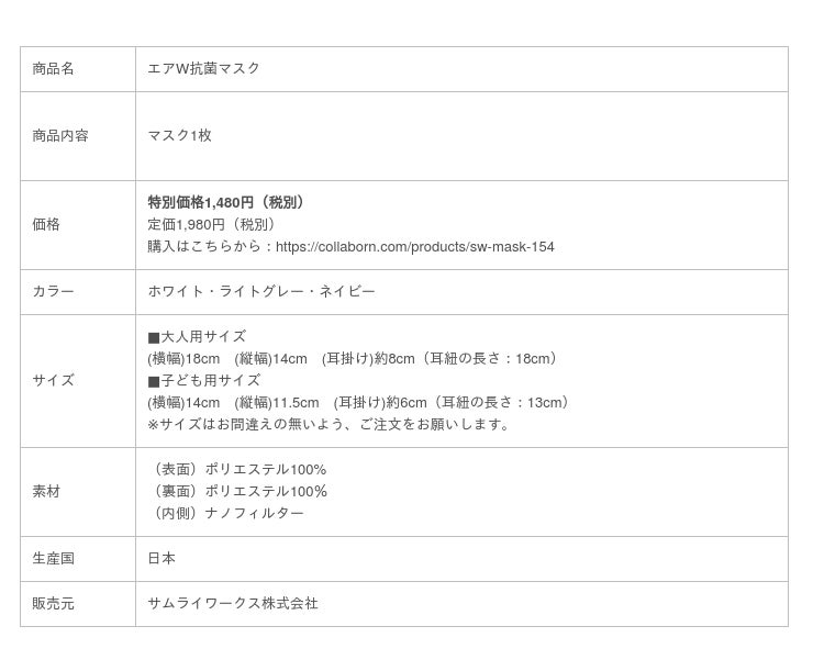 購入はこちらから:https://collaborn.com/products/sw-mask-154