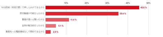 多くのユーザーはプロミスがWeb完結で申し込める点や即日融資が可能な点にメリットを感じており、プロミスの金利条件が良いと答えた人は5.1%に留まった。