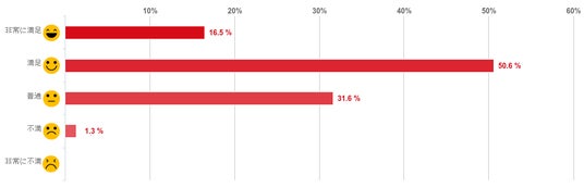 プロミスの即日融資の満足度評価では、「非常に満足」「満足」との評価が合計で8割以上集まった。