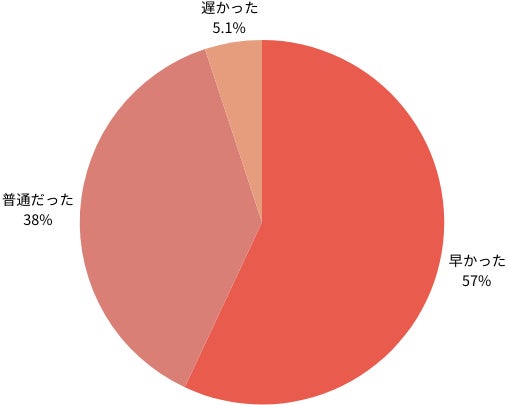 プロミスの審査のスピードが「早かった」と回答した人が57%となり、「遅かった」と答えた人は5.1%と僅かだった。