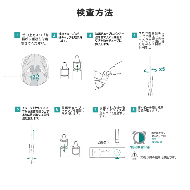◆だれでも簡単に15分~30分で検査可能(30分以降の検査結果は無効です)