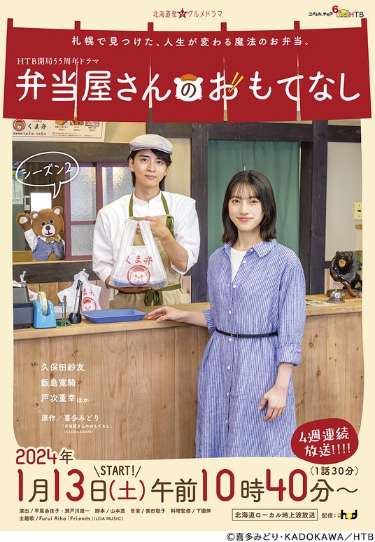シリーズ累計30万部(文庫・コミックスの紙・電子含む)を超える、札幌が舞台の人気グルメ小説『弁当屋さんのおもてなし』の待望の実写化ドラマ。2023年2月25日からシーズン1が全4話放送され、今年1月13日からシーズン2が放送された。札幌の路地裏に佇む弁当屋『くま弁』と出会い、人生が変わった傷心のOL・小鹿千春(久保田紗友)と魔法の弁当を作るミステリアスな料理人・大上ユウ(飯島寛騎)を中心に繰り広げられる、お腹も心も温まる、北海道発のハートウォーミングなグルメドラマ。