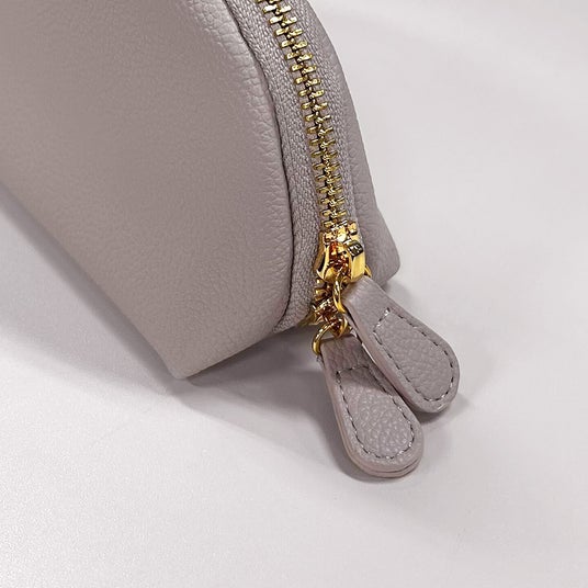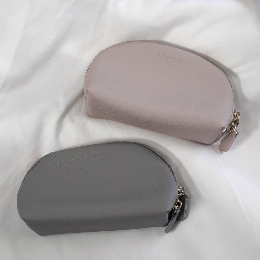 やわらかな質感のシュリンクレザーポーチ本製品はやわらかな質感のシュリンク調のPUレザーを採用したポーチです。レザー調でありながら重すぎない見た目で普段使いに最適です。