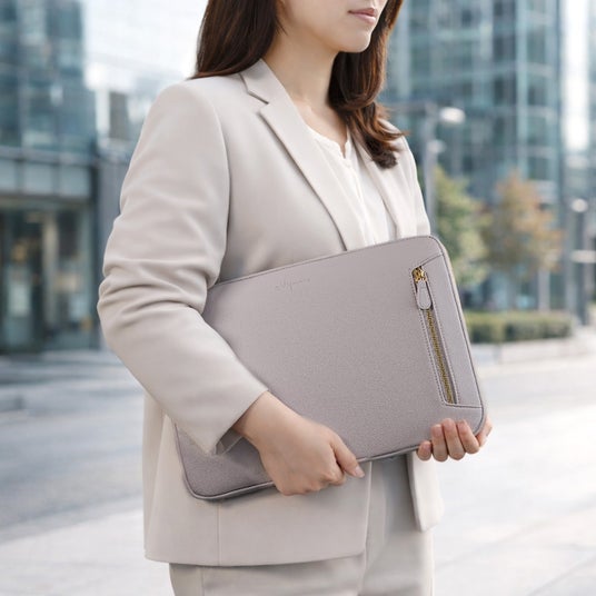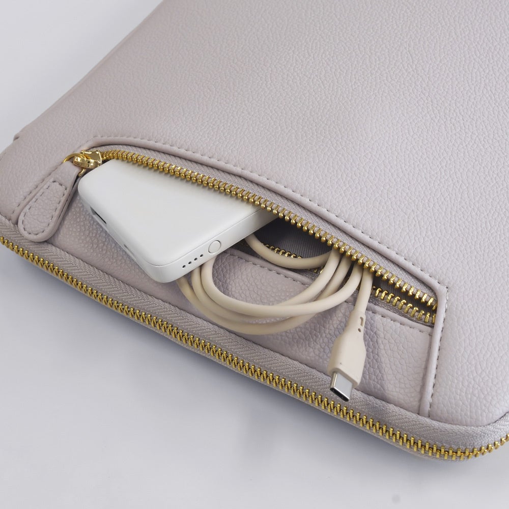 レザー調がおしゃれなノートPCケース13~14インチのノートPCや、タブレット向けのケースです。繊細なシボのシュリンク調PUレザーが、知的で洗練された印象を与えます。持つだけで仕事もプライベートもスマートに。