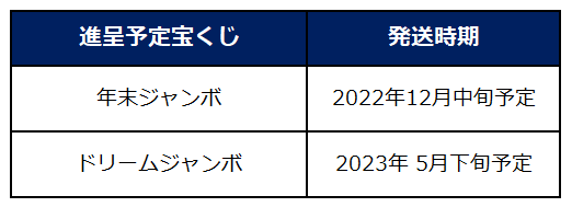 年間2回の宝くじ(年末ジャンボ・ドリームジャンボ)が対象です。