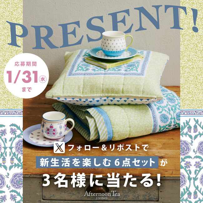アフタヌーンティー公式Xで、フォロー&リポストのプレゼントキャンペーンをスタート。