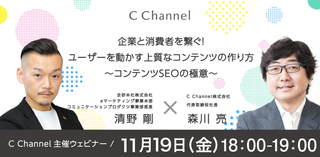 C Channel株式会社が主催するウェビナー「企業と消費者を繋ぐ!ユーザーを動かす上質なコンテンツの作り方~コンテンツSEOの極意~」に、弊社 清野が登壇することをお知らせいたします。