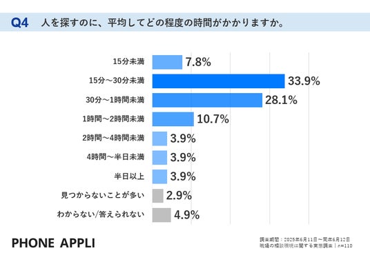 2.8割以上が「人探し」に15分以上費やす。時間的コストの大きさが明らかに