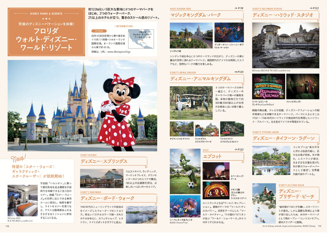 ・国内外にあるディズニーパークの情報が満載!各パークにあるアトラクションや、会えるキャラクターなどの情報を収録