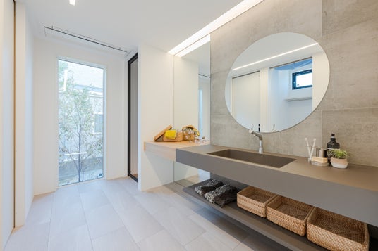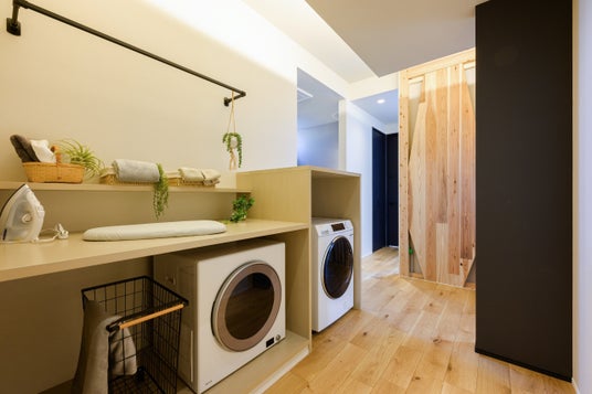 折り重なる屋根が創りだす威風堂々とした佇まいと、水平ラインを強調し研ぎ澄まされた建築美を追求しました。内観は各部屋を流れるように繋ぐことでシームレスな住空間を創造し、効率的な家事動線と住まいの広がりや奥行きを両立させています。洗濯・乾燥・たたむ作業を効率的に行える一箇所完結型のランドリールームも完備。やすらぎと暖かさを感じさせる、永く受け継がれる豊かな住まいに仕上がりました。