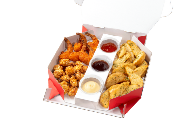サクサクチキン、サクサクエビ、ポテトフライの3種類のサイドメニューを、スイートチリソース、BBQソース、マヨソースの3種類のドミノ・ピザオリジナルディップソースで味わえる夏らしさ満点の新商品です。家族や仲間とそれぞれのお好みと気分に合わせて、お好きなサイドメニューにお好みのソースをディップする楽しさがワンボックスでお楽しみいただける、パーティーにもぴったりな商品です。