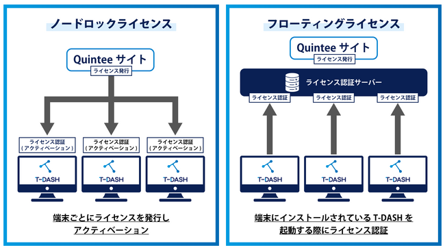 2023年11月8日には、よりお客様のプロジェクトや企業規模に合ったプランを選択できるよう新料金プランを発表しました。新たに追加した「フローティングライセンスプラン」では、ライセンス数に制限がなく、複数の端末でライセンスを共有できるため、使用端末が限定されずにT-DASHを使うことができます。