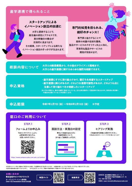 株式会社キャンパスクリエイトは、「多様な主体によるスタートアップ支援展開事業」採択事業による取り組みの一環として、産学連携に関心のあるスタートアップを対象に無償の相談窓口を設置します。