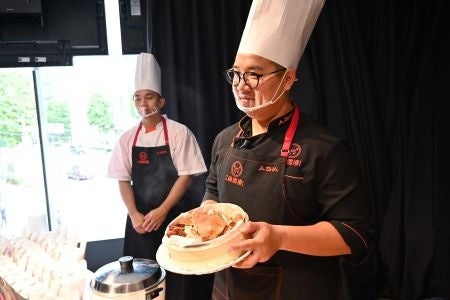 会場では台南・阿霞飯店の呉健豪料理長による「紅蟳米糕」(アンチムビーコー/蟹のおこわ)の調理実演が行われ、出席者らに振る舞われた。また、この料理を紹介した詩人・焦桐(ジアオ・トン)『味の台湾』(原題:味道福爾摩莎)の訳者である川浩二氏が、台湾料理と文学の魅力について解説した。