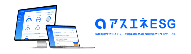 「アスエネESG(旧:ESGクラウドレーティング)」は、企業のサプライチェーンのESG(E:環境、S:社会、G:ガバナンス)経営の取り組みを可視化できるESG評価プラットフォームです。