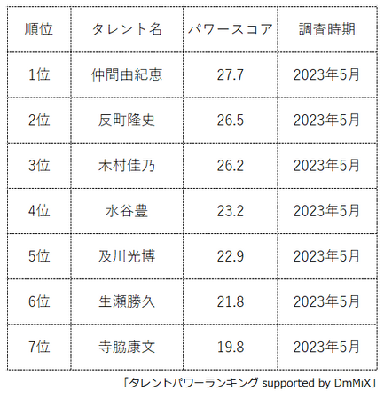 本ランキングは、2023年5月度に実施したタレント調査データ(一部過去実施データ)を利用し、タイトルに応じてランキング形式でまとめたものです。