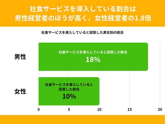 【社食サービスを導入している割合は男性経営者のほうが高く、女性経営者の1.8倍】