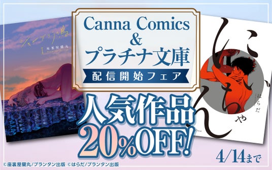 キャンペーン内容:人気作品20%OFF!Canna Comics&プラチナ文庫配信開始フェア
