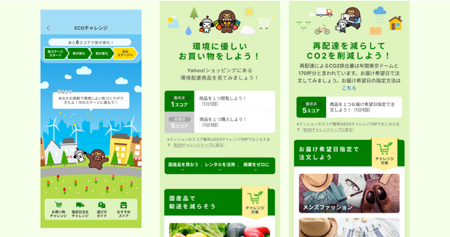 ヤフー株式会社(以下、Yahoo! JAPAN)が運営する毎日おトクな「Yahoo!ショッピング」は、「いつものお買い物で地球のあしたをいつまでも~きょうからできるYahoo!ショッピングのエコ活~」をコンセプトに、いつものお買い物が、どのくらい環境への負荷を軽減できたかわかる、ミニゲーム「ECOチャレンジ」(以下、本機能)の提供を開始しました。