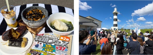 入道埼灯台利活用事業実行委員会は、2025年9月27日(土)に入道埼灯台利活用事業「灯台×ジオパーク×郷土料理」に関するイベント「第2回入道埼灯台石焼フェス&体験ツアー」を開催いたしました。石焼フェス来場者は約1600名、体験ツアー参加者16名と大盛況。さらに秋田海上保安部と男鹿市が主催の「入道埼灯台まつり」も同時開催され、あわせて大きな盛り上がりをみせました。