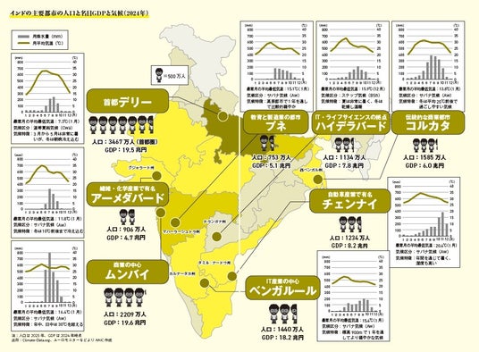 『インドの主要都市の人口と名目GDPと気候(2024年)』本書より