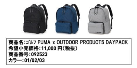 本コレクションでは、OUTDOOR PRODUCTSの象徴とも言える「Daypack」へのオマージュを込めつつ、PUMA GOLFならではの機能性を融合。アパレルやキャップ、シューズポケット、ティーホルダー、など、ゴルファーのニーズに応えるディテールを加えた、まさにライフスタイルとスポーツを繋ぐハイブリッドデザインとなっています。