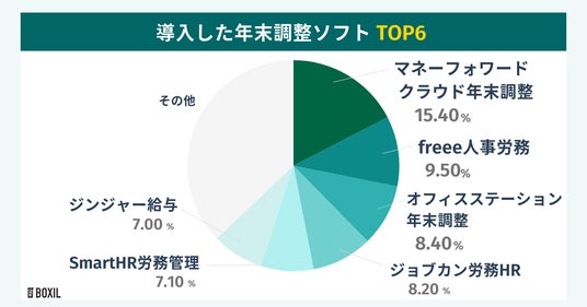 最も選ばれたのは「マネーフォワード クラウド年末調整」。次いで「freee人事労務」「オフィスステーション 年末調整」も人気